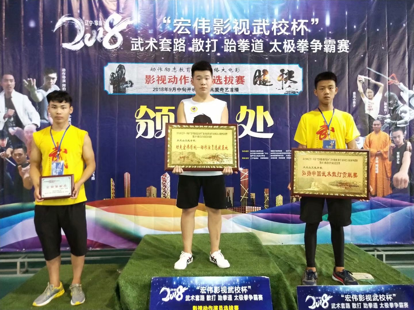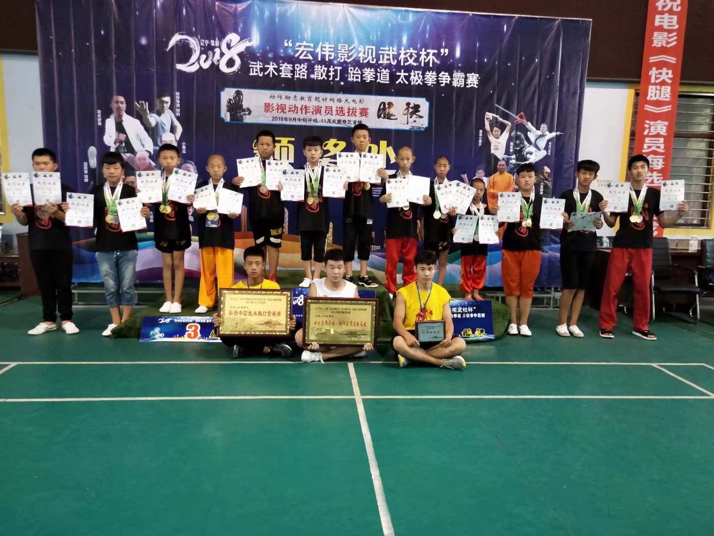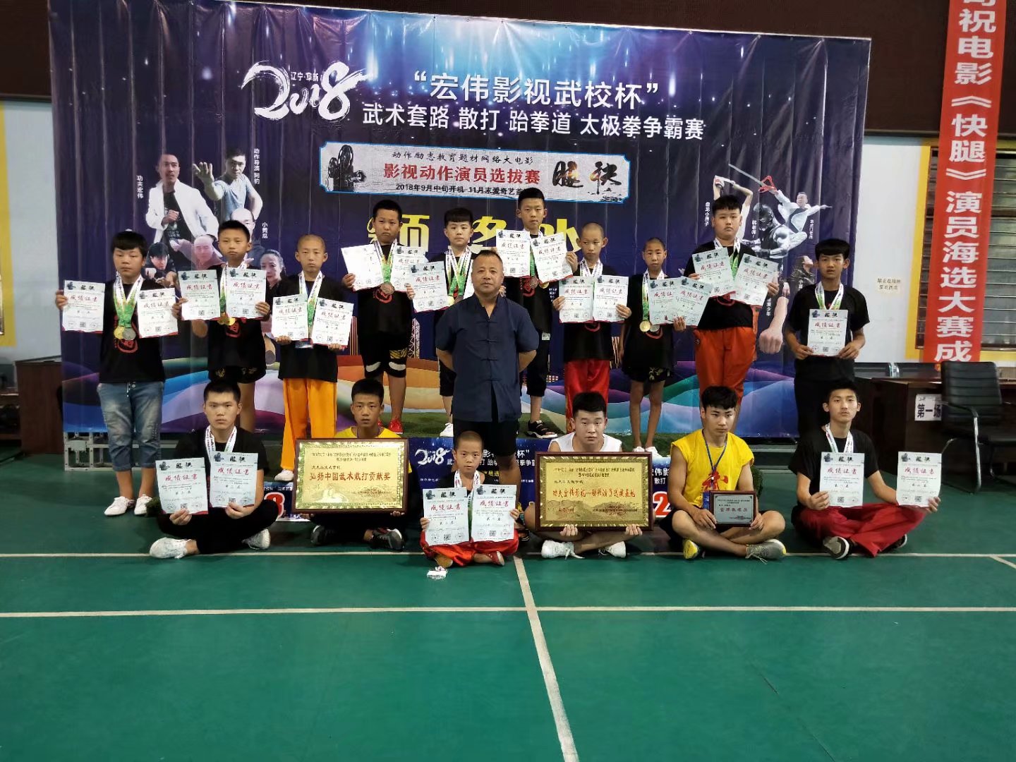 2018年8月我校15名学生参加在阜新举办的,国际武术、散打、跆拳道争霸赛,获得金牌12枚、银牌10枚、铜牌8枚的好成绩